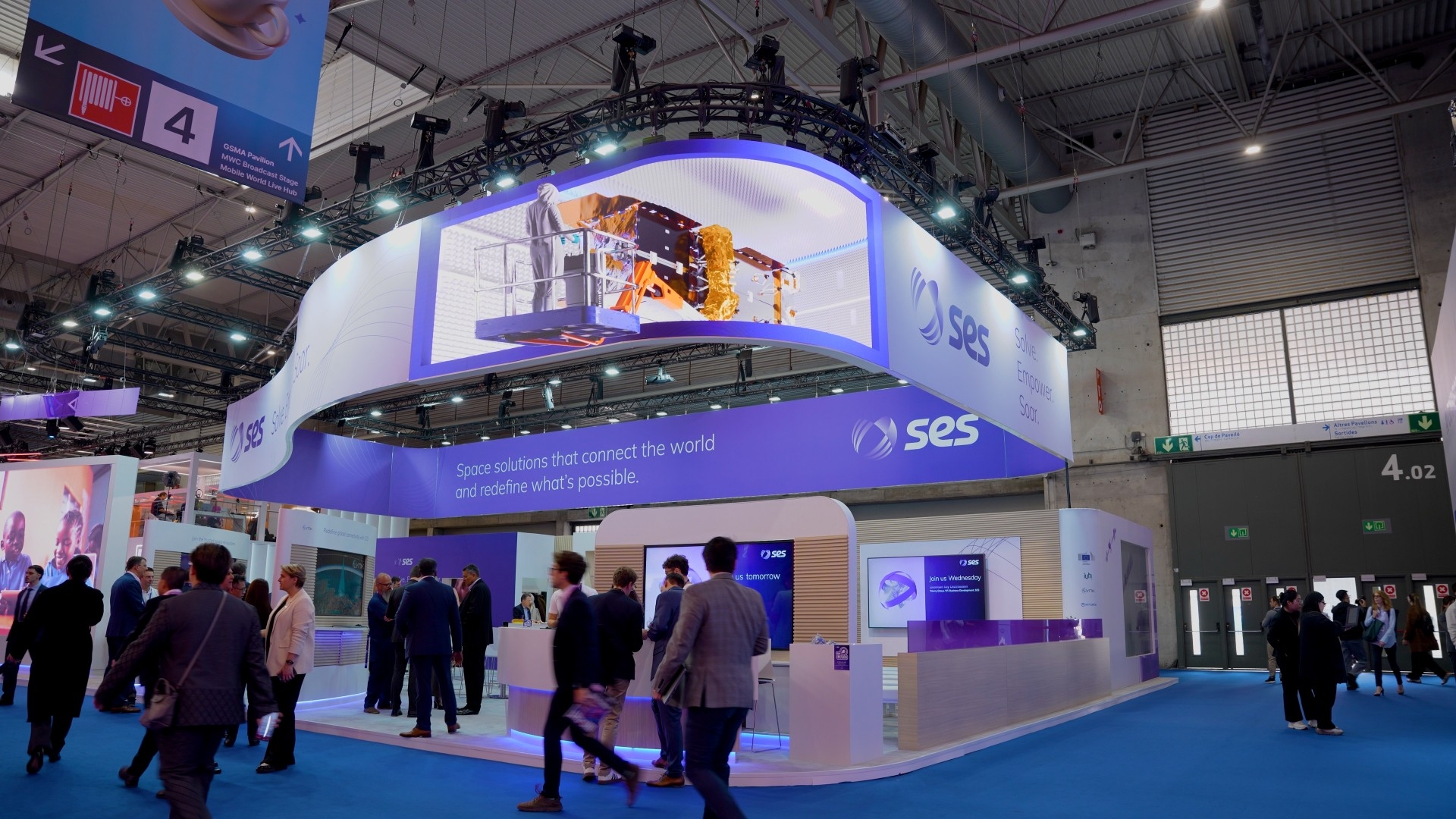 SES is our longest-standing client relationship, approaching thirty years of work spanning live events, broadcast, and global trade show programmes. MWC is the centrepiece of that trade show activity, and each year the challenge is the same: show up with consistency and find a way to move things forward.
